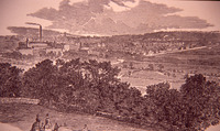 C2b-102/4/8: Etching of Saltaire coloured Etching of Saltaire coloured. One of a collection of Slides relating to Saltaire compiled by Albert Bowtell. -