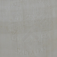 - Silk scarf printed with 'Yorkshire Royal Exhibition 1887 plus the Salt coat of arms. See also 2022.1 for a similar item.