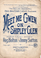 2025.86: Meet me Gwen on Shipley Glen A musical score with lyrics of the song 'Meet me Gwen on Shipley Glen'. Music by Jimmy Sutton and lyrics by Reg Bolton. The song is about two young lovers arranging to meet at a specific rock ('Number 9') on Shipley Glen, a green open space near Saltaire. Reg Bolton was a well lnown writer and perfomer of comedic songs.