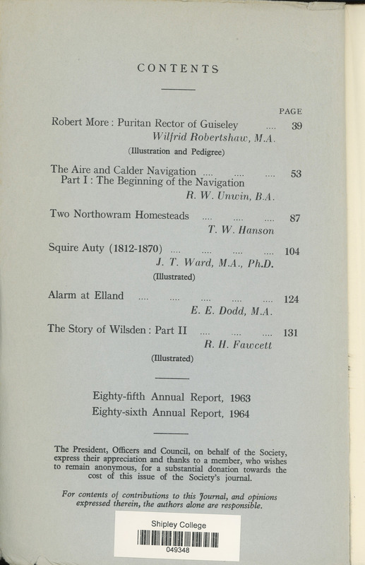 The Bradford Antiquary November 1964: Contents page