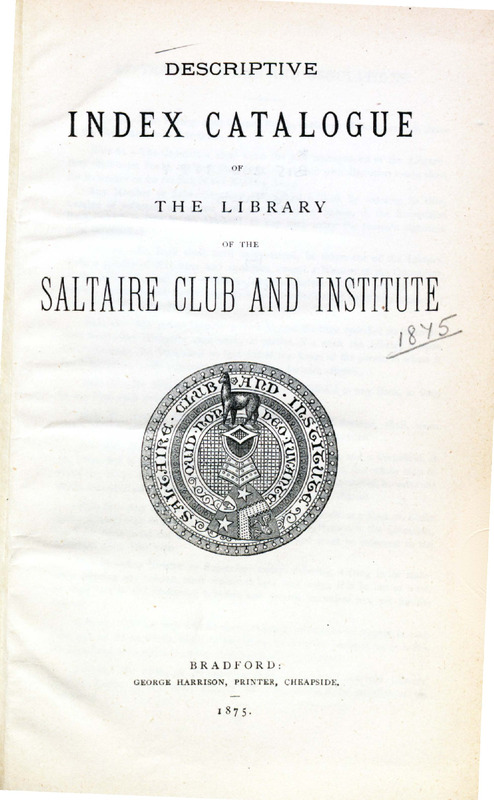 - Descriptive Index Catalogue of the Library of the Saltaire Club and Institute