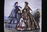 C2b-102/12/16: Ladies in crinolines Ladies in crinolines. One of a collection of Slides relating to Saltaire compiled by Albert Bowtell. -