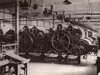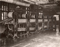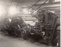 B1-032/4/8: Carding (2) photograph shows the doffing end of worsted carding engine. A smaller machine is visible to the left. -