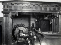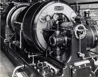 B1-032/5/18: Steam turbine (3) A close up of the steam turbine 'Mary', named after Sir James Roberts' granddaughter. In the top right of the photograph is a small section of ornate wall. -