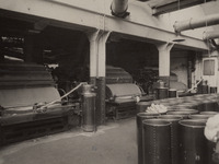 B1-032/4/9: Carding (3) Room containing 3 carding machines in combing shed. Doffing (delivery end) of card. -