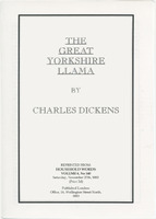 A1-037b,c,e: The Great Yorshire Llama1 of 5 copies of a reprint of 'The Great Yorkshire Llama' by Charles Dickens. The reprint is from Household Words Voume 6, o 140 published on Saturday November 27th 1952. The article tells a story of how Titus Salt allegedley discovered surplus alpaca wool in 1836 and started experimenting with it to produce cloth. This led to a very successful textile business and, as the article was being written, the construction of a large new mill in what was to become Saltaire.