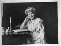 2018.36.13: Catherine Salt Original Photograph of Catherine Salt (nee Crossley wife of Titus Salt Junior) as an elderly woman. She is sitting at a desk with a candle and a fabric covered book. -