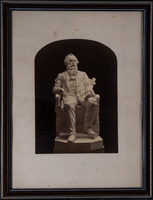 2018.36.15: Statue of Sir Titus Salt Original framed photograph of a statue of Sir Titus Salt. This appears to be the same design as the statue that was originally located outside of Bradford Town Hall in 1874 but is now located in Lister Park in Bradford. It is not clear whether the status pictured is the actual public statue, a copy or perhaps an initial small-scale design. -