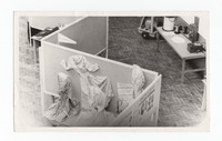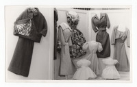 2019.46.13.2: Textile Display Black and white photo (13.5x8.5cm) of display of textile garments of machinery. May be linked to adult education classes and appear to be in the Exhibition Rd. Building (see also 2019.46.14, 2019.46.13.1, 2019.46.13.2) -