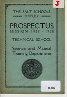 E2-033a-k: Salt School's Technical School Prospectuses (1927-1940) 11 original copies of: Salt Schools Technical School Prospectuses (1927-1939) a) Prospectus Science & Manual Training Deptment - 1927-28 b) Prospectus Textile Department - 1927-28 c) Prospectus Technical School - 1930-31 d) Prospectus Technical School - 1931-32 e) Prospectus Technical School - 1932-33 f) Prospectus Technical School - 1933-34 g) Prospectus Technical School - 1934-35 h) Prospectus Technical School - 1935-36 i) Prospectus Technical School - 1936-37 j) Prospectus Technical School - 1938-39 k) Prospectus Technical School - 1939-40 -