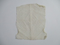 2016.2.30: Piece of decorated cream netting. Rectangular piece of cream netting decorated with a spot design made up of a central cream spot surrounded by 3 black spots. -