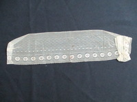 2016.2.27: Length of Italian lace with sales ticket. Italian lace piece with sales ticket sewn onto straight edge. -