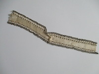 2016.2.32: Length of silk ribbon/trim. Length of cream and black silk ribbon/trim. A woven silk centre with a zigzag design above and below. -