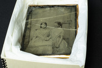 2018.9.6.17: Broken glass-plate negative Broken glass negative of two unidentified young women. -