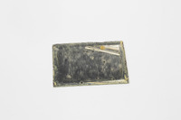 2018.9.6.12.1: Hand mirror Small silvered hand mirror. Partly tarnished. Part of contents of a fabric clutch bag. -