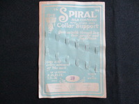 2016.2.47: Card to display a collar support Original retailers display card for a silk covered Collar Support. Card is 15.5cm x 10.7cm. Blue background with white text. 24 slits in the card to hold the item. -