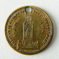 - Medallion commemorating the erection of a statue of Titus Salt in Bradford Town Hall Sq (2.5 cm). Shows Salt statue on plinth. Inscription around the edge reads: 'Erected in Honour to Sir Titus Salt Bart' 'Bradford 1874.