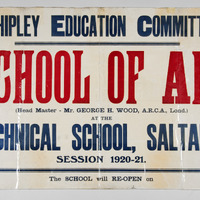 | E2-133: Poster for Shipley Education Committee 'Re-Opening of the Technical Schools 1920 | Physical Object |