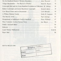 Bradford Antiquary Third Series No.4 1989: Contents page |