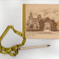 - 1 dance card with pencil attached for Milner Field Ball - 9th October 1895. Decorated with an illustration of Milner Field.