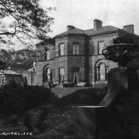 - A photograph of the rear of the central part of Crow Nest, a favoured home of Sir Titus Salt. The photograph shows the central part of the building with a garden in front. A large glass-fronted conservatory is visible on the left.