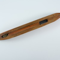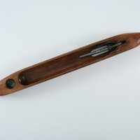- A wooden shuttle with metal tips and an interior metal mechanism.