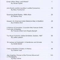 - The Bradford Antiquary The Journal of the Bradford Historical and Antiquarian Society Third series No.16 2012. Contains chapter entitled "The Royal Yorkshire Jubilee Exhibition, Saltaire, 1887" by Letitia Lawson and a review of "The Land Acquisitions of Titus Salt in Shipley and Baildon " by Ian Watson