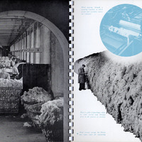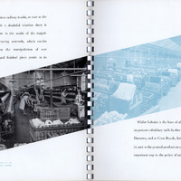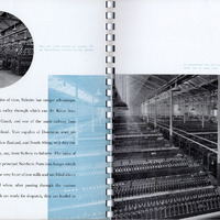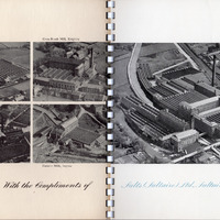 - An advertising booklet for Salts (Saltaire) Ltd. Contains text briefly describing the history of the business, but mainly concerning the workings of Salts Mill and the new mill at Uddingston, Scotland at the time of publication. Contains many photographs of mill machinery being used to produce textiles. Also includes photographs of amenities provided by the business including: a hostel for women workers; a clinic; leisure sports facilities in nearby sports grounds and Roberts Park. There is some coverage at the end of the booklet of the new factory at Uddingston.