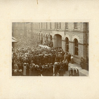 - Photograph of James Roberts addressing a group of workers at Salts Mill c.1900s