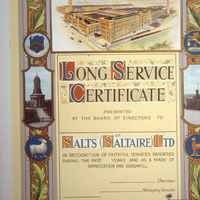 - L.S.C. certificate. One of a collection of Slides relating to Saltaire compiled by Albert Bowtell.