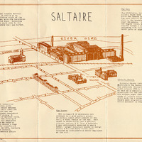 - 'Saltaire Rescource Base in Salts Mill' - Information leaflet from Bradford City Council. Gives details of what is in the Resource Base and how to access it. There is a note about the 'Future of Salts Mill' which records that the Mill is now being redeveloped and already contains the '1853 Gallery' featuring the work of David Hockney. One side of hte leaflet is a map of Saltaire with drawings of some of hte major buildings, including Salts Mill, the United Reformed Church and Victoria Hall.