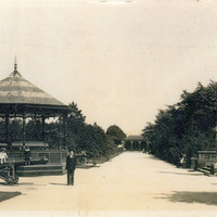- Photograph of Roberts Park. Shows the main promenade with children on the canon by the bandstand.