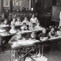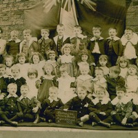 - 1 original copy of photograph of Salt School infant class 1910/11 - Axe drawn on blackboard - Information regarding Phillip Pickard (a pupil on the photograph) on reverse.