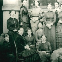 - Mounted photograph of 'Salts High School Staff' taken around the 1880s with both Medina Griffiths (current headmistress) and Harriet Byles (future headmistress) identified.
