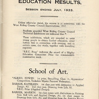 c) Shipley Education Committee, Schol of Art, Tecnical School & Evening Institutes - List of Prizes Aug 1933