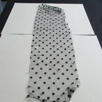 - 2 pieces of black lace netting decorated with spots. Both pieces are rectangular in shape, unfinished and decorated with large black spots. Each spot i 9mm in diameter.