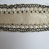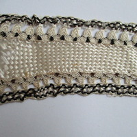 - Length of cream and black silk ribbon/trim. A woven silk centre with a zigzag design above and below.