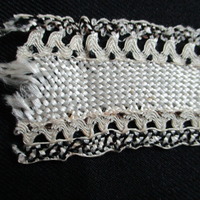 Length of silk ribbon/trim.: Detail of cream and black silk ribbon. (ii)