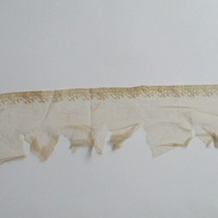 Piece of decorated nylon netting.: Piece of decorated cream netting. (i)