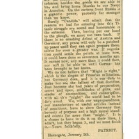 Loose news cuttings, 1916-1918: The War and After - Candida reply to Patriot
