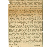 Loose news cuttings, 1916-1918: Plea for Discussion of Peace Basis - reply to Candida