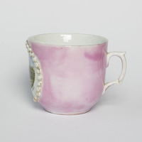 - 1887 Royal Yorkshire Jubilee Exhibition Souvenir cup decorated with a view of Salts Mill.