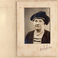 - Photograph of Isabel Salt in later middle age. Contained in a cream folder with 'Wishes sincere' printed on the front - 2 copies only 1 framed