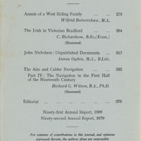 - Contains an article on: 'The Irish in Victorian Bradford' by C. Richardson; also 'John Nicholson - Unpublished documents' by James Ogden