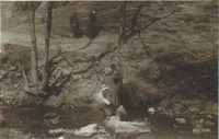 2025.81.2: A Difficult Crossing Visitors crossing a waterway at Shipley Glen, titled A Difficult Crossing. -