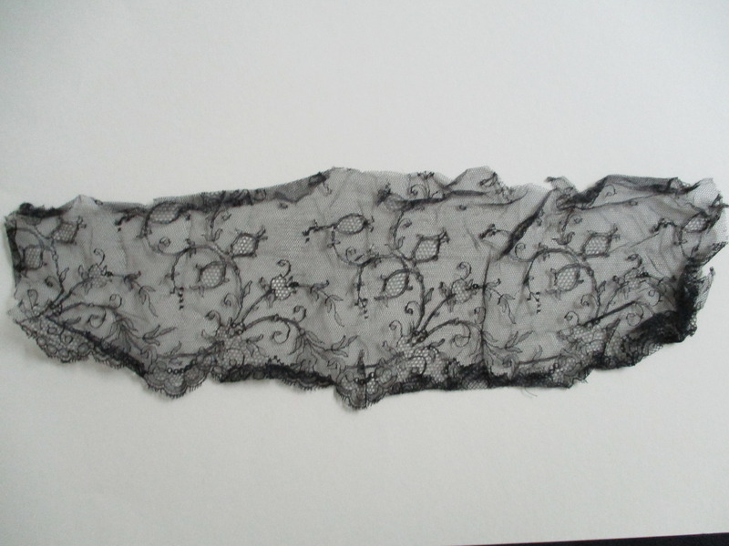 Black lace netting: Black lace lower edge detail.