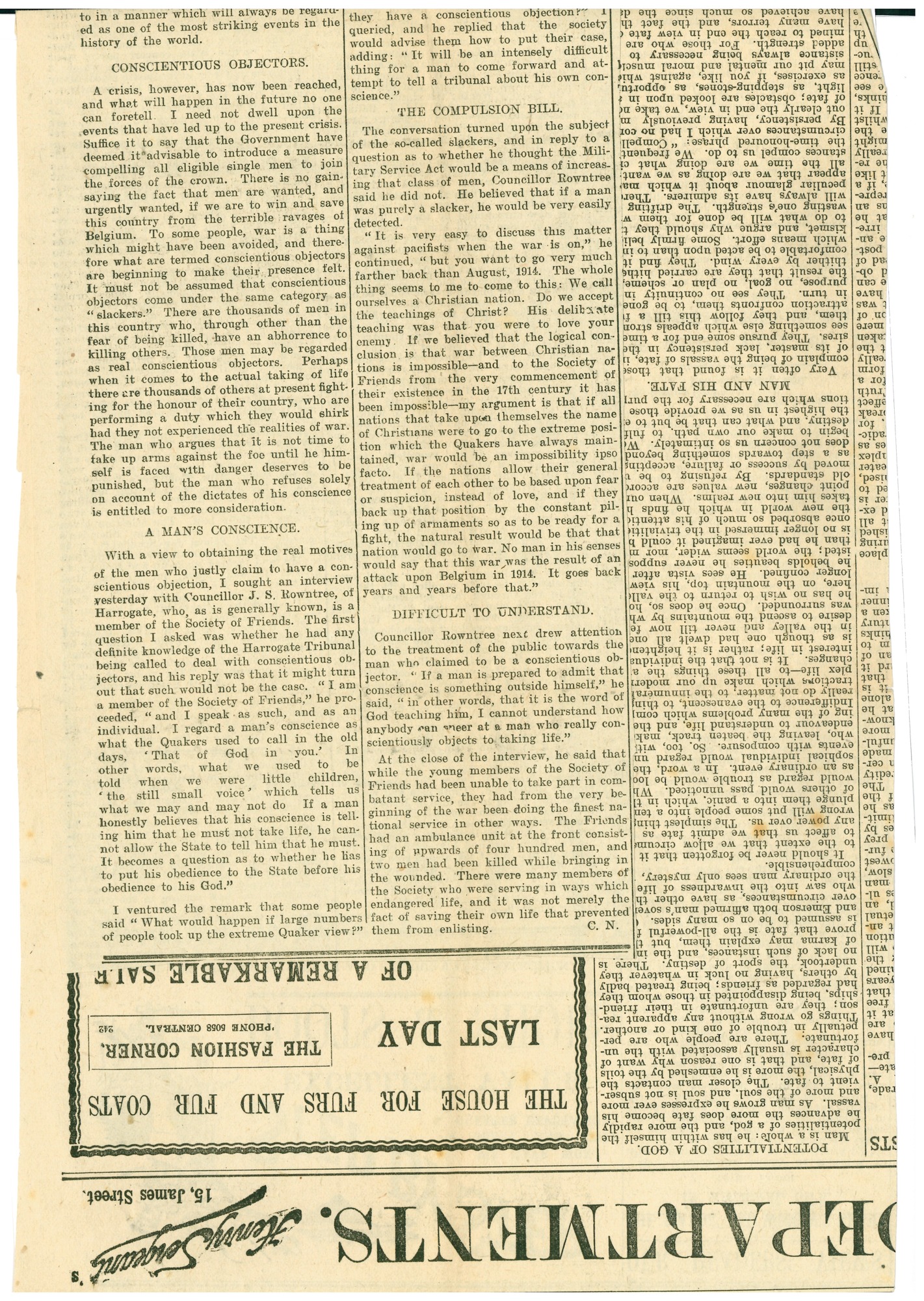 - Loose news cuttings, 1916-1918: The Mayor and Womens Share in National Life - part 2 continuation of the letters page