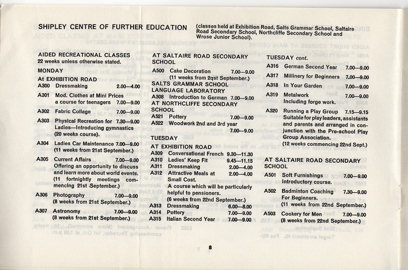 - Shipley College Documents: Recreational classes brochure 1970-71 - page 8