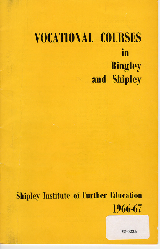 - Shipley College Documents: Vocational courses brochure 1966-67 - front cover