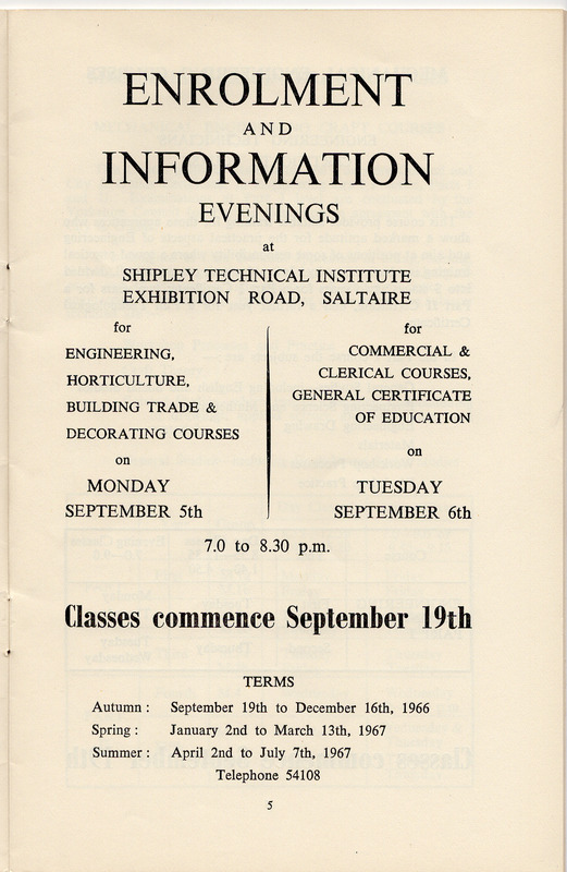 - Shipley College Documents: Vocational courses brochure 1966-67 - page 5